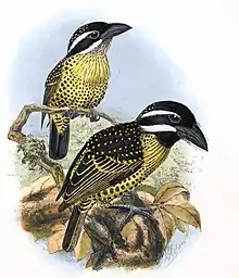 The hairy-breasted barbet (Tricholaema hirsuta) is a species of bird in the family Lybiidae.[3] It is found throughout the Africa tropical rainforest.