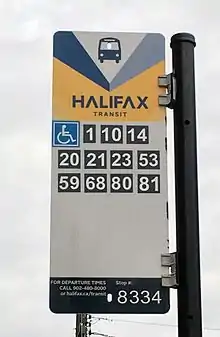 Although Halifax Transit's vehicle fleet is considered accessible, many of the bus stops are not. At some stops, the lack of an appropriate landing area prevents the deployment of a bus wheelchair ramp. Other stops lack sidewalk connections. Halifax Transit is upgrading bus stops and aims to make all stops accessible by 2030.[35]