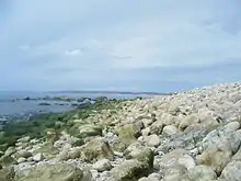 Tar Rocks are located near the bay. They are the relics of an ancient landslide, with the majority often hidden at high tide.[7] The British cargo steamer SS Thames was wrecked at Tar Rocks in 1891, after being driven ashore in fog.[8][9] In 1930, SS Barmston, a collier, was also wrecked at the site and became a total loss.[10]