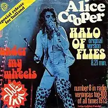 "Halo of Flies" is a 1973 single by rock band Alice Cooper taken from their 1971 album Killer. The single was only released in the Netherlands, two years after the song appeared on the album. The song was, according to Cooper's liner notes in the compilation The Definitive Alice Cooper, an attempt by the band to prove that they could perform King Crimson-like progressive rock suites, and was supposedly about a spy organization.