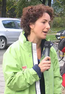 Between October 2003 and January 2004, Halsema was on maternity leave. She got twins. Marijke Vos, the vice-chair of the parliamentary party took over as party leader. After her return to the House of Representatives, Halsema started a debate about the course of the left in general and GroenLinks in particular. She claimed that her party was the last "left liberal party in the Netherlands".[17] She called for increased cooperation with the Socialist Party, the Labour Party and GroenLinks, aiming at a left-wing majority government after the 2007 election. She asked Labour Party leader Wouter Bos to speak out in favour of such a cabinet, but he refused in order to allow for a possible coalition of the Labour Party and the Christian Democratic Appeal. In January 2006, she was elected "Liberal of the Year" by the Youth Organisation Freedom and Democracy, the youth organisation of the People's Party for Freedom and Democracy (VVD), because of her new political course, in particular where it came to reforming the welfare state.[18] In June 2006, she was the only candidate for the top spot on her party's list.[19] During the campaign, she published Linkse lente (Left-wing Spring), a book co-authored by Michiel Zonneveld, which blends her political vision and personal biography. In the 2006 election the party lost another seat.