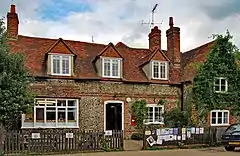 The brick and flint cottages in the centre of the village conform to a similar design and have dormer windows topped with red tiles. Saint Mary the Virgin's church dates from the 14th century and includes a conspicuous memorial to Cope D'Oyley (who died in 1633) and his family. The tower contains eight bells and the ceiling is quite intricately decorated in parts. The post office in the village serves also as the local shop and café.