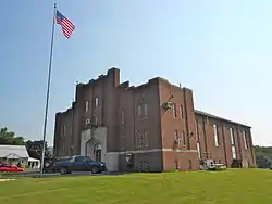 Built between 1938 and 1939, the Hamburg Armory is a "T"-shaped building consisting of a three-and-one-half-story, front administration section and two-and-one-half-story, rear drill hall.[2]