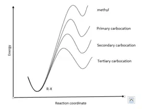 Energy diagrams of SN1 reactions