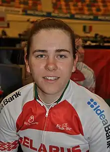 Hanna Tserakh (born 7 September 1998) is a Belarusian racing cyclist,[3] who currently rides for UCI Women's Continental Team Minsk Cycling Club.[4] She rode in the women's scratch event at the 2018 UCI Track Cycling World Championships.[5]