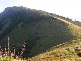 The Hanthana Mountain Range lies in the central highlands of Sri Lanka, south-west of Kandy. It was declared as an environmental protection area in February 2010 under the National Environment Act.[1] The maximum height of the range is 1,200 m (3,800 ft). The mountain range consists of seven peaks. The highest one being the Uura Kanda.[2] The range is a favourite destination among the mountain hikers in Sri Lanka. University of Peradeniya is situated adjacent to the Hanthana mountain range.[3]