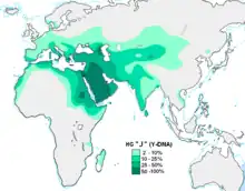 Haplogroup J-M304, also known as J,[Phylogenetics 1] is a human Y-chromosome DNA haplogroup. It is believed to have evolved in Western Asia.[2] The clade spread from there during the Neolithic, primarily into North Africa, the Horn of Africa, the Socotra Archipelago, the Caucasus, Europe, Western Asia, Central Asia, South Asia, and Southeast Asia.