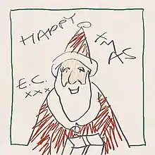The artwork for the album, consisting of cartoonish, childlike drawings, was created by Clapton himself, who drafted all of it very quickly on some sheets of paper he found in his hotel. The front cover features a Santa character who looks vaguely like Clapton, while the inner spread includes a Santa sleigh pulled by reindeer under a four-pointed Christmas star, as well as a Christmas tree. In his interview with Climie, Clapton jokes that the artwork took him "months and months" of failed attempts, before revealing the truth. He also states that he was inspired by Bob Dylan, who, as an accomplished painter, came up with his own artwork for several of his albums.[6] The "Happy Xmas"/"E.C." lettering on the front cover, as well as the whole of the tracklist on the back, are also in Clapton’s own handwriting.