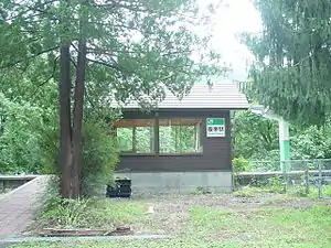 Haratai Station has a single side platform serving a single bidirectional track. There is no longer a station building, but only a waiting room built on the platform. The station is unattended.