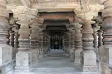 Open hall with lathe turned pillars of Harihareshwara temple (1224 CE) in Hoysala architectural style