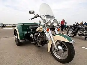 The Servi-Car used variations of Harley-Davidson's 45 cubic inch flathead. From 1932 to 36, the Servi-Car used the engine from the solo R model.[1] It was changed in 1937 to the engine used in the W model, which differed mainly in having a recirculating oil system instead of the constant-loss system of the R.[2][7] The "W" flathead engine continued until the end of production in 1973, despite the "W" solo series being replaced by the "K" series in 1952.[2][8]