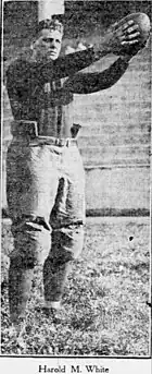 Harold M. "Babe" White was an All-American football player for Syracuse University. He played at the guard position for Syracuse from 1913–1916. A native of New York, White attended DeWitt Clinton High School.[1] At 6 feet, 6 inches in height and 273 pounds, White was the largest American football player of his time.[2][3][4] He was selected as a first-team All-American in 1915. He was also selected as the captain of the 1916 Syracuse football team.[3]