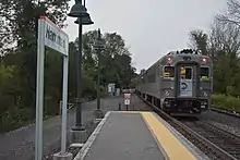 Harriman station is a commuter rail stop on the Metro-North Railroad's Port Jervis Line, serving the village of Harriman, New York, the town and village of Monroe, and the town of Woodbury in Orange County, New York. Before its use as a station, the area was better known as "Newburgh Junction" and was where the Erie Railroad's mainline separated from the Newburgh Shortcut (and, later on and more importantly, the Graham Line). This junction was controlled by "NJ" interlocking tower and, while the mainline has been abandoned since 1983, the wye remains intact.