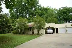The Harris House is a historic house at 6507 Fourche Dam Pike in Little Rock, Arkansas. It is a single-story stuccoed structure, designed in an ecelctic interpretation of Spanish Revival architecture. Prominent features include a circular tower at one corner, a parapet obscuring its sloping flat roof, and a port-cochere with a segmented-arch opening supported by battered wooden columns. It was built in 1924 for Florence and Porter Field Harris, to their design and probably the work of Porter Harris, a master plasterer known for his work on the Arkansas State Capitol.[2]