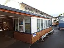 The manual training timber vocational building, Block L, was also extended to the north in 1959, with a new 24-foot (7.3 m) square classroom; and concrete steps and a flower box (latter not extant 2016) were added at the north end of the verandah.[59][60] In the same year a new section of covered walkway was constructed between the administration block and the west end of Block C, with the addition of a health services room at the west end of the upper floor of Block C, west of the stairs; and an Oslo lunch canteen to the south of, and separate from, the southwest corner of the ground floor of Block C.[61] The lunch canteen was initially built with three half-height brick walls (being open to the north) with fixed wired glass windows over (to the west, south and east) and the north side has since been enclosed.[62][1]