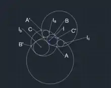 The circle H touches the incircles I, ,, of a circular triangle ABC and its associated triangles.