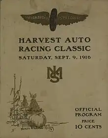 - "Twenty cars will compete in Harvest Classic at Speedway". Indianapolis News. September 6, 1916. p. 10. Retrieved May 4, 2020 – via Newspapers.com.