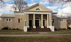 The First Church of Christ, Scientist was established in Davenport in 1892 by 16 practitioners as a branch of the mother church in Boston.[2] They built this building, which was designed by the prominent Davenport architectural firm of Clausen & Clausen, in 1912. A Christian Science Reading Room was opened downtown. First Church moved in the 1970s to a new facility on Fairhaven Road in Davenport.