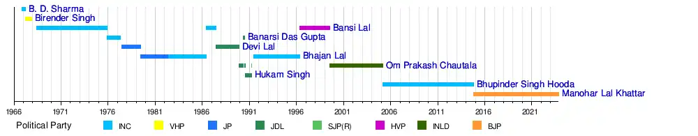 | Bhagwat Dayal Sharma | Jhajjar | 1 November 1966 | 23 March 1967 | 142 days | 1st | Indian National Congress | |