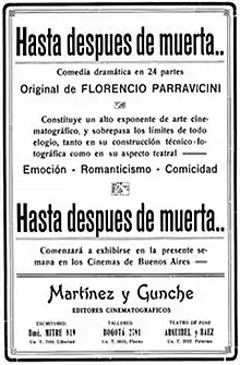Hasta después de muerta ('Til After Her Death) is a 1916 Argentine silent film, shot in black and white. It was directed by Ernesto Gunche and Eduardo Martínez de la Pera and written by Florencio Parravicini. The film was released in 1916 and it had Florencio Parravicini, Pedro Quartucci, Orfilia Rico and Enrique Serrano as the main characters.[1] The story is told through flashbacks, which was unusual for the era.[2]