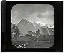 Hazelton is one of the oldest settlements in northern British Columbia; its European settlement dates back to 1866 when the Collins Overland telegraph went through.[4] Hazelton was the original gateway and staging area for the Omineca Gold Rush of 1869-73. It also had the only proper hospital for hundreds of miles in any direction. Another, less appreciated, distinction was in having dozens of roaming, foraging, and howling sled dogs, as nearly everyone had their own team and many were allowed to run free. Transportation options got better in 1891 when the Hudson's Bay Company’s sternwheeler Caledonia arrived from Port Essington. As the head of navigation on the Skeena, Hazelton played host to more than a dozen sternwheelers throughout the next twenty-two years.