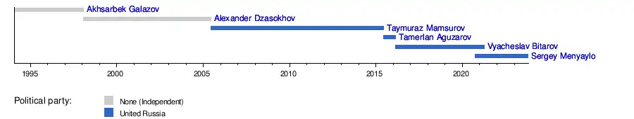 The position of the head of the Republic of North Ossetia–Alania[lower-alpha 1] (formerly known as the President of the Republic of North Ossetia–Alania) is the highest office within the Government of North Ossetia–Alania in Russia. The head is elected by citizens of Russia residing in the republic. The term of service is five years.[1]