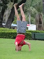 The headstand, or sometimes head stand, is a pose that is an inversion posture of standing head down. The technique is used in different settings such as yoga, breakdancing, acrobatics and beginner gymnastics.
