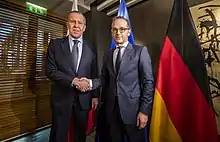 Heiko Josef Maas (German pronunciation: [ˈhaɪkoː ˈjoːzɛf ˈmaːs]; born 19 September 1966 in Saarlouis) is a German lawyer[2] and former politician of the Social Democratic Party (SPD) who served as the Federal Minister of Foreign Affairs (2018–2021) and as the Federal Minister of Justice and Consumer Protection (2013–2018) in the cabinet of Chancellor Angela Merkel.[3] Since 2022, he has been practicing as a lawyer.[4]