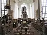 The Baroque organ case survives, including the case pipes, from German-born Johan Lorentz's [3] 1630 organ, but the organ itself has been replaced. The present organ is used both for concerts and church services.[4]