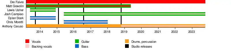 - Dre Faivre – lead vocals (2013–present)