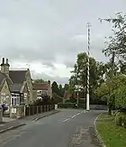 Opposite the churchyard is a 19th-century maypole of wood and wrought iron with painted red white and blue stripes.[6][9] It is one of the oldest in England, and danced round each May Day during the village May Day Fete. On Church Street is the listed early 19th-century Post Office,[10] now non-operational, and Manor Farmhouse, originally 17th-century.[11] On Spital-in-the-Street Road is the early 17th-century Spital Almshouse, now a cottage, and its barn, previously a hospice.[12][13]