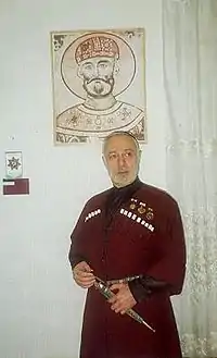 Kuprashvili is also a historian, journalist, and Full Professor of Political Science at the Georgian Technical University. He is the President of Georgian Federation of National Swimming Styles, the founder and the chairman of Saint David the builder's Union of Chokhawearers,[35][36] and the Seaside Guardians Association of Aeetes[37] He has been awarded a medal for "Courage" (1993), the Order of Vakhtang Gorgasali Second Class (2002),[38] and the golden medal of George Byron.