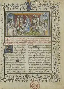 In 1282, at the request of King Philip IV of France, Henri translated the De regimine principum of Giles of Rome from Latin into French under the title Le livre du gouvernement des rois et des princes ('the book of the government of the kings and of the princes').[1] Giles's work was, with the Secretum secretorum, the most popular work in the mirror for princes genre during the Middle Ages.[2] Henri's translation is preserved complete in at least 30 manuscripts and in part in at least nine more.[3]