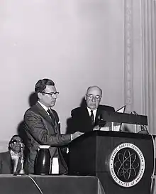 ![]() Hurwitz (left) receiving the E.O. Lawrence Award in 1961 | |