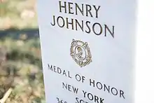 On May 14, 2015, the White House announced that Johnson would receive the Medal of Honor posthumously, presented by President Barack Obama.[16] In the ceremony, held on 2 June 2015, Johnson's medal was received on his behalf by Command Sergeant Major Louis Wilson of the New York National Guard. Obama said, "The least we can do is to say, 'We know who you are. We know what you did for us. We are forever grateful.'"[17]