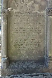 His son Claude Sawtell married the artist Rosa Budden.[27][28] Henry Sawtell was buried at Barbadoes Street Cemetery.[21]