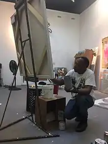 ![]() Artist Henry Taylor working on a painting | |