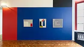 Several of his geometric abstracts from the interwar period are on permanent display at the Neoplastic Room (Sala Neoplastyczna) at Muzeum Sztuki in Łódź. The design of the room was conceived by Władysław Strzemiński in 1948, inspired by interactions of primary colors typical of De Stijl movement, complemented by black, white and grey tones. The display was shut down in 1950 by the communist regime, until it was reconstructed based on surviving photographs.[47] The exhibition space was expanded in 2010 to include a wider range of interwar and contemporary art from the museum's collection.[48]