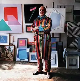 ![]() Stażewski at his Warsaw studio during the 1980s | |