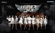 Her Secret Weapon (Korean: 비밀병기그녀, also called The Secret Weapon and The Secret Weapon, Her) is a 2015 South Korean reality show that focuses on members of lesser-known K-pop girl groups. The show explores what it is that turns people into fans of a certain girl group or individual idol by exposing the charms or "secret weapons" of each contestant. As ten contestants show off their hidden talents and charms through competition, their rankings in various missions are decided by a panel of ten judges who were reporters, industry experts, and passionate girl group fans. The show premiered on June 19, 2015, on MBC Every 1.[1][2]