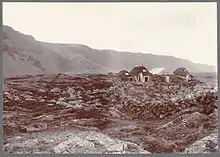 The 12 January 1940, Einar Benediktsson died in Herdísarvík, but Hlín lived there till in 1958 (she died in 1965).[11] She was also good in running the farm and as a businesswoman, selling ice from the small lake, which she stocked in the wintertime in a hut, to fishermen from Iceland and the Faroe Islands. The farm of Krýsuvík which was also in the possession of Einar Benediktsson, was for some time without a tenant and had to be managed from Herdísarvík. Hlín let construct a road against the lava field Ögmundarhraun for transport of sheep and hay to Grindavík.[12]