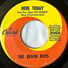 "Here Today" was written by Brian Wilson and Tony Asher for the Beach Boys' Pet Sounds album in early 1966.[2] Although Wilson claimed that Asher only provided the words to his music, Asher credited himself with contributing musical ideas to several songs on the album,[3] including this one, as Asher stated, "'Here Today' contains a little more of me both lyrically and melodically than Brian."[4] Moreover, Asher said,