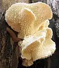 ![]() | Hericium erinaceus ("Bearded tooth", "tree hedgehog", "monkeyhead") | Found on living oak and beech trees.[16] | North America, Europe and Asia |