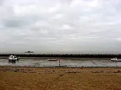 The advent of overseas travel and changes to holiday trends eventually caused the town's economy to decline after the 1960s; regular flooding of the Plenty Brook prevented redevelopment of the town centre.[7] However, extensive seafront regeneration in the 1990s followed the creation of the Neptune's Arm sea defence jetty. The jetty has created a small harbour used by leisure boats and from where tourists can take sailing yacht trips to a seal-watching site in the Thames estuary. The Victorian gardens on the seafront were then able to be fully restored. The Central Bandstand, built in 1924, was refurbished after years of disrepair and closure to the public. A swimming pool and cinema were added to the town centre in the early 1990s. In 2005, a wind-farm with thirty 2.75 MW wind turbines was built 5 miles (8 km) off the coast of Herne Bay and Whitstable, generating a total of 82.5 MW of electricity. The recent upgrades by the Council have helped improve the image of the town and raise its profile. It is hoped this will attract new investment in tourism and business by the private sector, and lead to the regeneration of the town's economy.[25][26]