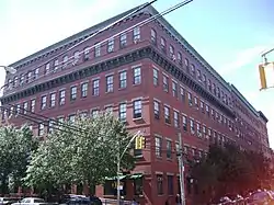Hertlein and Schlatter Silk Trimmings Factory is a historic factory building located in the Mott Haven section of The Bronx, New York, New York. The original building was built in 1887 and expanded in 1892 and 1910–1911. It is a five-story brick building, 14 bays long. A six-story extension was built in 1904–1905. It originally housed a silk trimming supplier. After 1935, it housed the Hygrade Casket Corporation until about 1982. The original building and extension remained vacant until restored during 1999-2000 for residential and commercial use.[2]