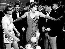 In 1966, Allen wrote an hourlong musical comedy television special for CBS, Gene Kelly in New York City.[56] It focused on Gene Kelly in a musical tour around Manhattan, dancing along such landmarks as Rockefeller Center, the Plaza Hotel and the Museum of Modern Art, which serve as backdrops for the show's production numbers.[57] Allen appeared in the special alongside Kelly. Guest stars included choreographer Gower Champion, British musical comedy star Tommy Steele, and singer Damita Jo DeBlanc.[58] In 1967, Allen hosted a TV special for NBC, Woody Allen Looks at 1967. It featured Liza Minnelli, who acted alongside Allen in some skits; Aretha Franklin, the musical guest; and conservative writer William F. Buckley, the featured guest.[59] In 1969, Allen hosted his first American special for CBS television, The Woody Allen Special, which included skits with Candice Bergen, a musical performance by the 5th Dimension, and an interview between Allen and Billy Graham.[60][61]