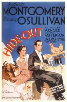 Hide-Out is a 1934 American pre-Code comedy, crime, drama, romance film directed by W. S. Van Dyke and starring Robert Montgomery and Maureen O'Sullivan. It also features a young Mickey Rooney. The film was nominated for an Academy Award for Best Writing - Original Story (Mauri Grashin).[1] It was re-made in 1941 as I'll Wait for You.
