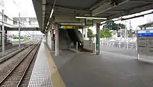 The Seibu station consists of one ground-level side platform, serving a single bidirectional track, connected to the JR platform and the station building by a footbridge.