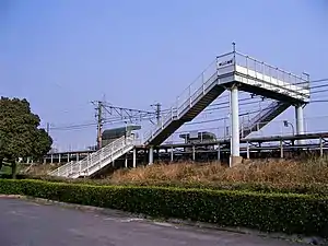 The station consists of two opposed side platforms located on an embankment, connected a footbridge.The station is unattended and there is no station building.