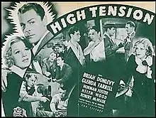 High Tension is a 1936 American comedy drama film directed by Allan Dwan and starring Brian Donlevy, Glenda Farrell, and Norman Foster. It was released by 20th Century Fox on July 17, 1936. The film was based on the story written by J. Robert Bren and Norman Houston.[1][2][3]